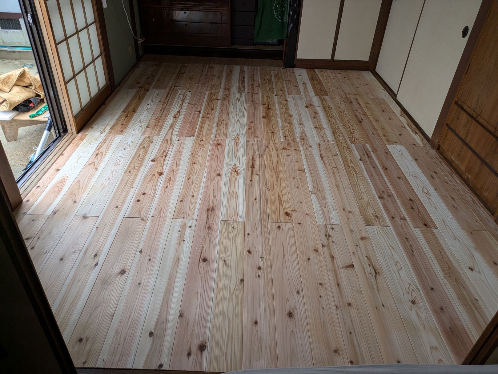 杉の無垢フローリング施工