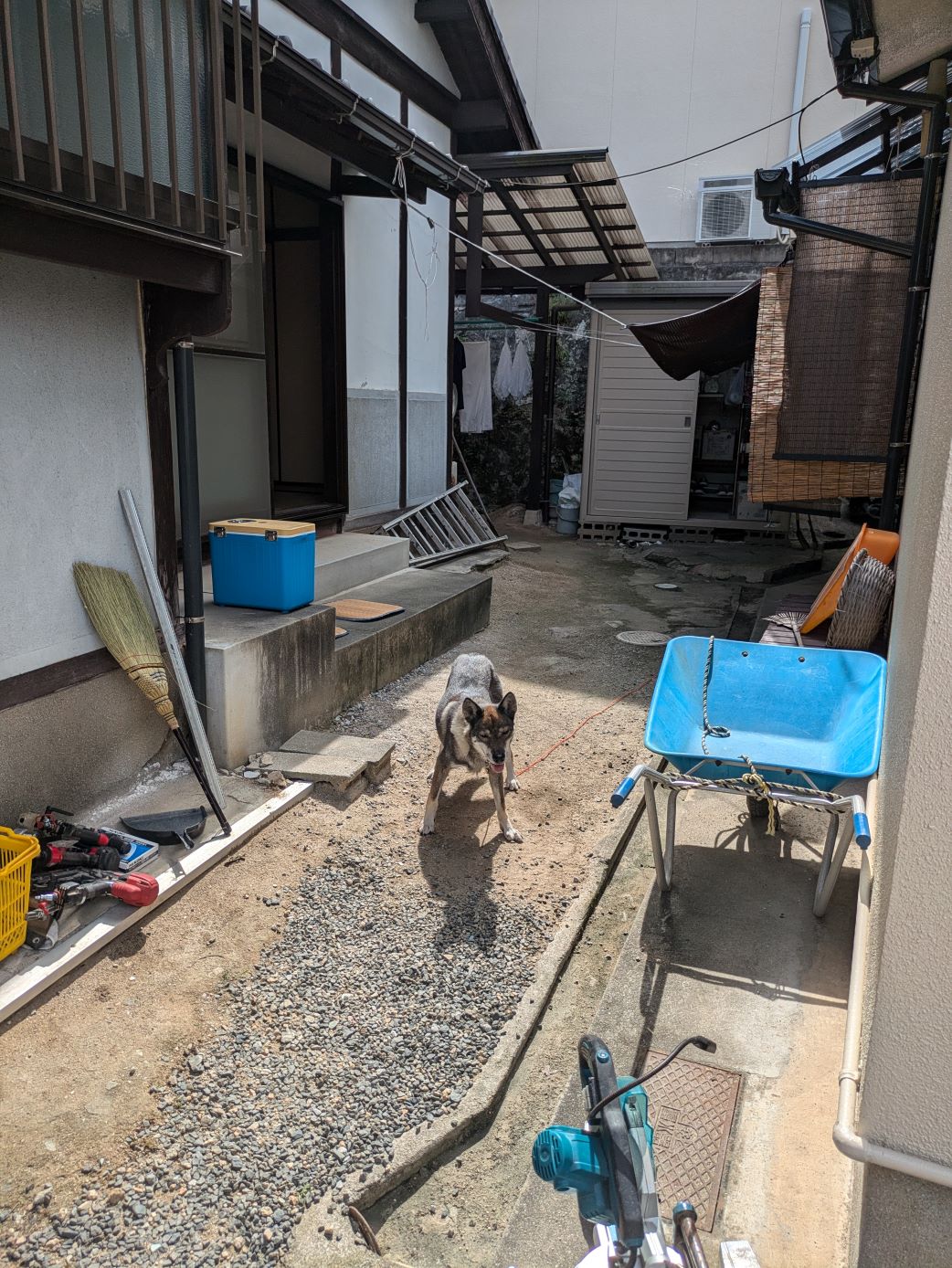 この日は9月下旬だというのに最高気温34度。お施主様のワンちゃんも暑そうでした💦